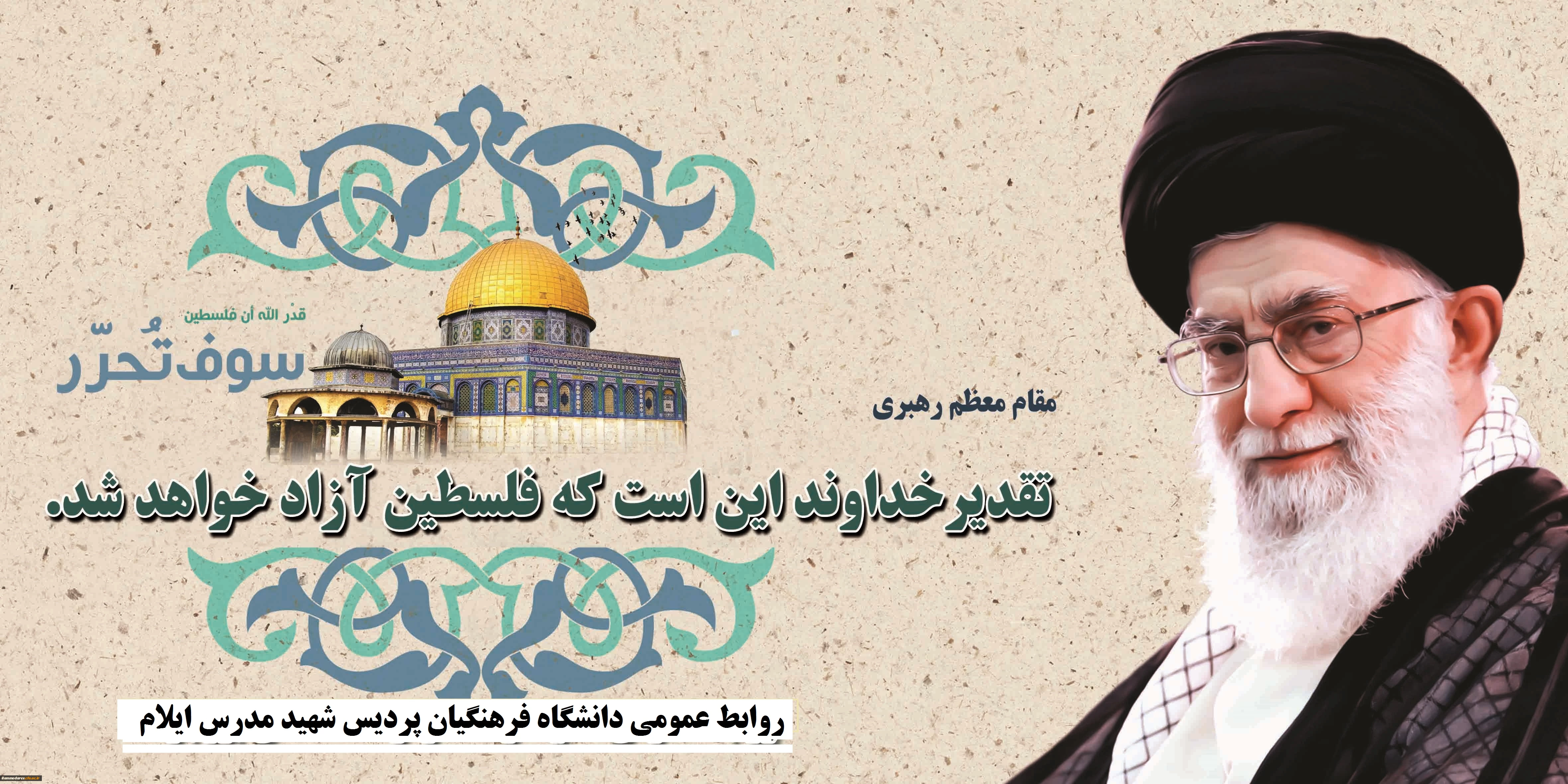 کارکنان، اساتید و دانشجویان شهید مدرس ایلام ضمن دعوت عموم مردم به حضور در راهپیمایی روز جهانی قدس، آمادگی خود را برای حضور در راهپیمایی این روز بزرگ اعلام نمودند. 2