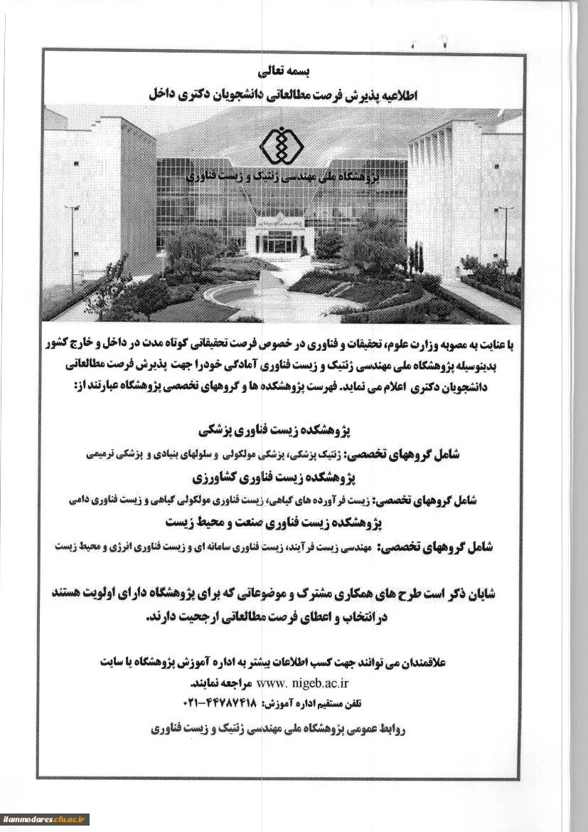امتیاز دهید : اطلاعیه پذیرش فرصت مطالعاتی داخل کشور برای دانشجویان دکتری 2 چهارشنبه 30 خرداد 1397 ساعت 15:04