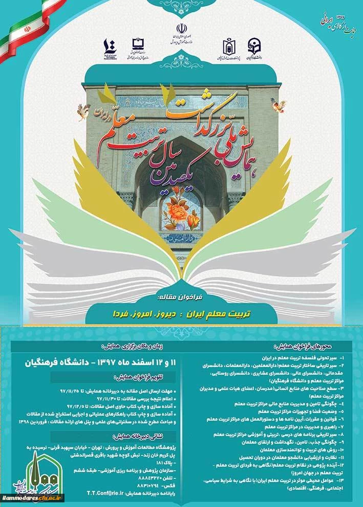 امتیاز دهید : همایش ملی با عنوان تربیت معلم ایران: دیروز، امروز ، فردا 2 دوشنبه 15 بهمن 1397 ساعت 16:09