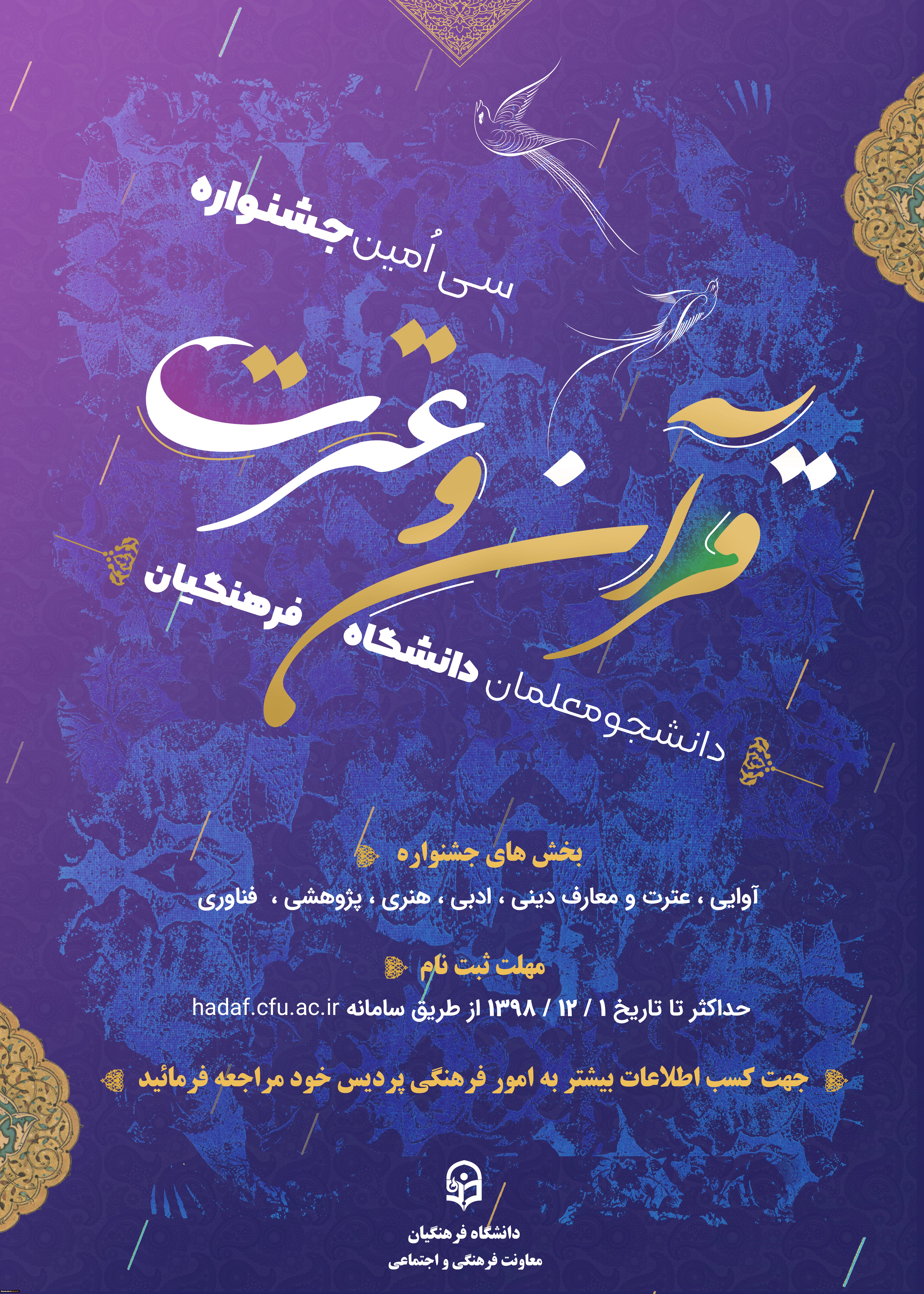دستورالعمل سی امین جشنواره فرهنگی (قرآن و عترت) ویژه دانشجومعلمان دانشگاه فرهنگیان، به همراه فایل پوستر 2