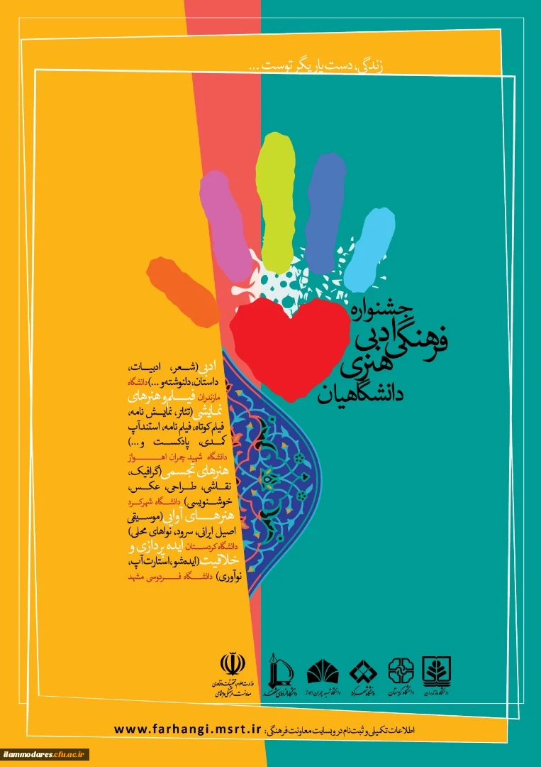 امتیاز دهید : برگزاری جشنواره ادبی، فرهنگی و هنری دانشگاهیان با عنوان زندگی، دست یاریگر توست ... 2 سهشنبه 10 تیر 1399 ساعت 9:35