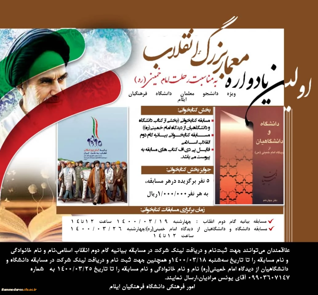 امتیاز دهید : مسابقه ی بزرگ کتابخوانی به مناسبت رحلت امام خمینی(رحمه الله علیه) 2 دوشنبه 10 خرداد 1400 ساعت 11:43