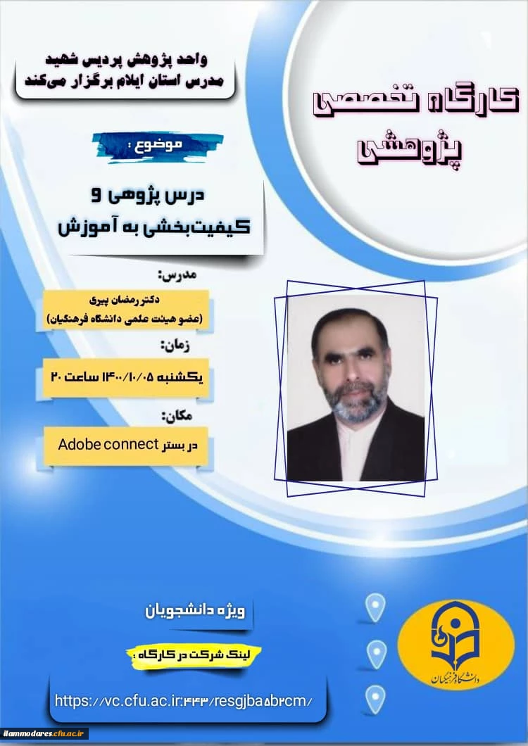 امتیاز دهید : برگزاری کارگاه مهارت افزایی«درس پژوهی و کیفیت بخشیبه آموزش» 2 سهشنبه 7 دی 1400 ساعت 12:03