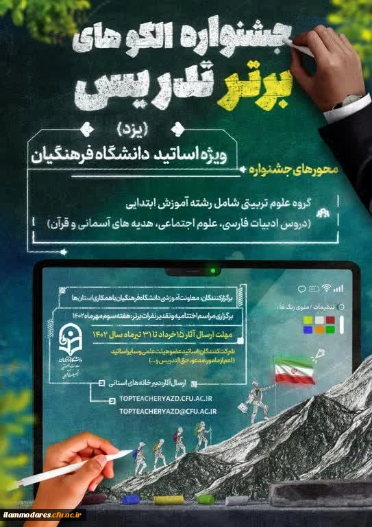 برگزاری جشنواره الگوی برتر تدریس در گروه علوم تربیتی: رشته آموزش ابتدایی (دروس ادبیات فارسی، علوم اجتماعی، هدیه های آسمانی و قرآن) 2